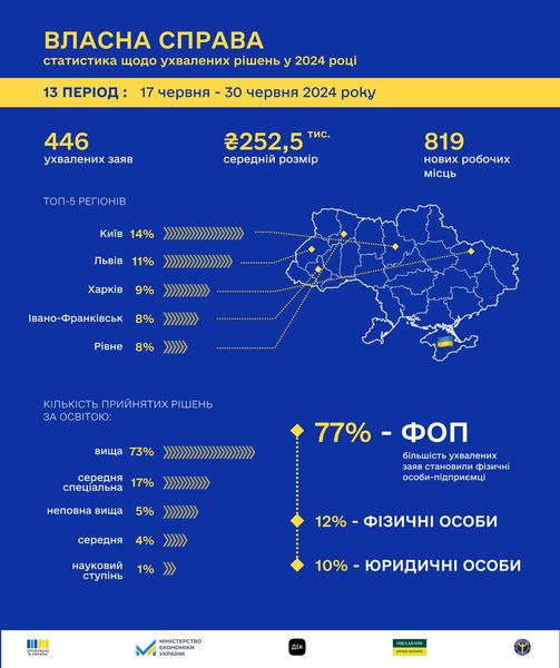 За підсумками 13-ої хвилі програми в цьому році, визначені ще 446 переможців. Вони отримають 112 млн гривень.