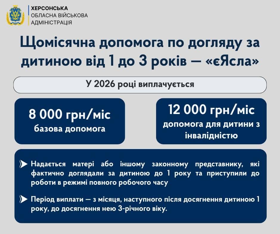 - Щомісячна допомога 7 000 грн на догляд за дитиною до року